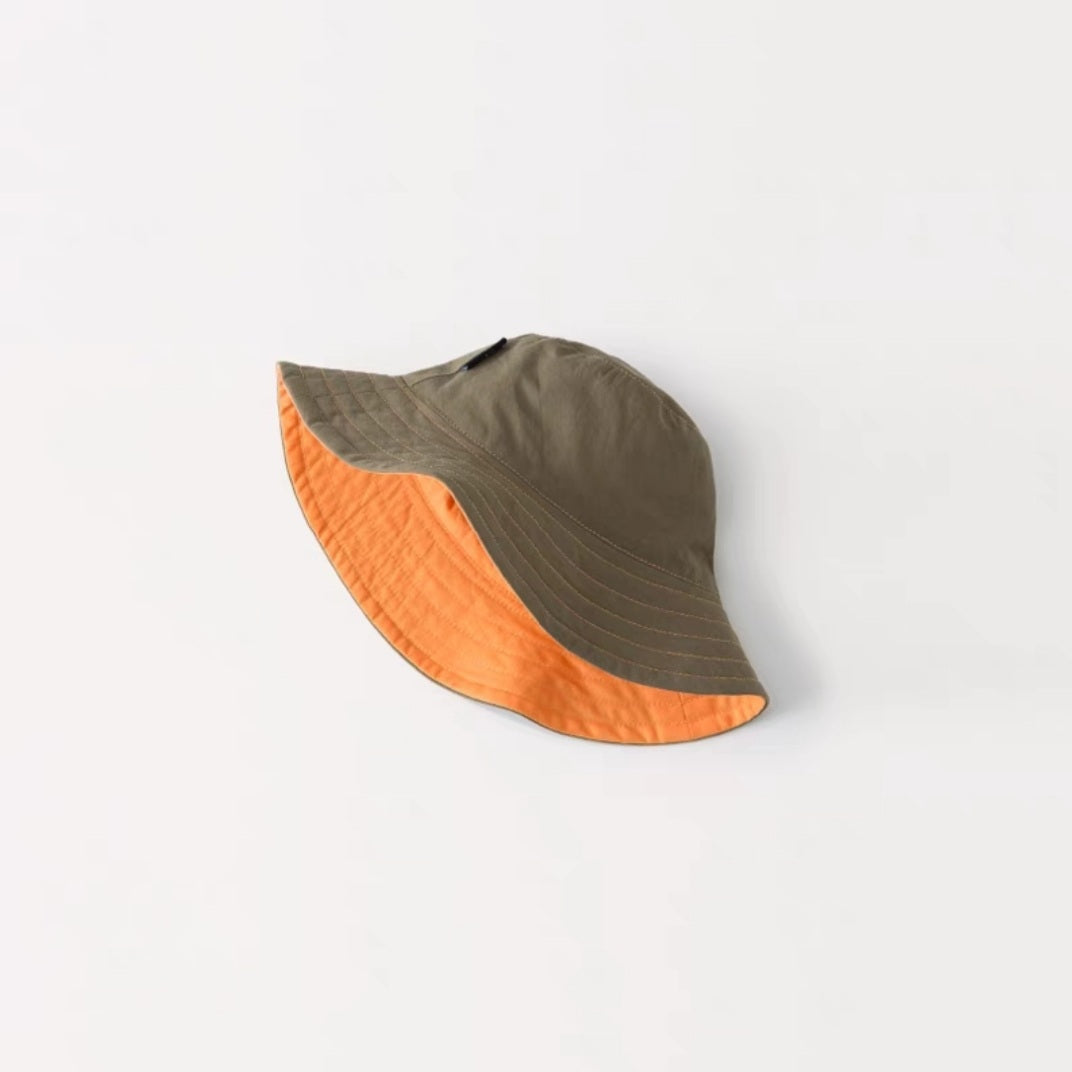 Reversible Bucket Sun Hat (Army Green + Sunrise Orange)