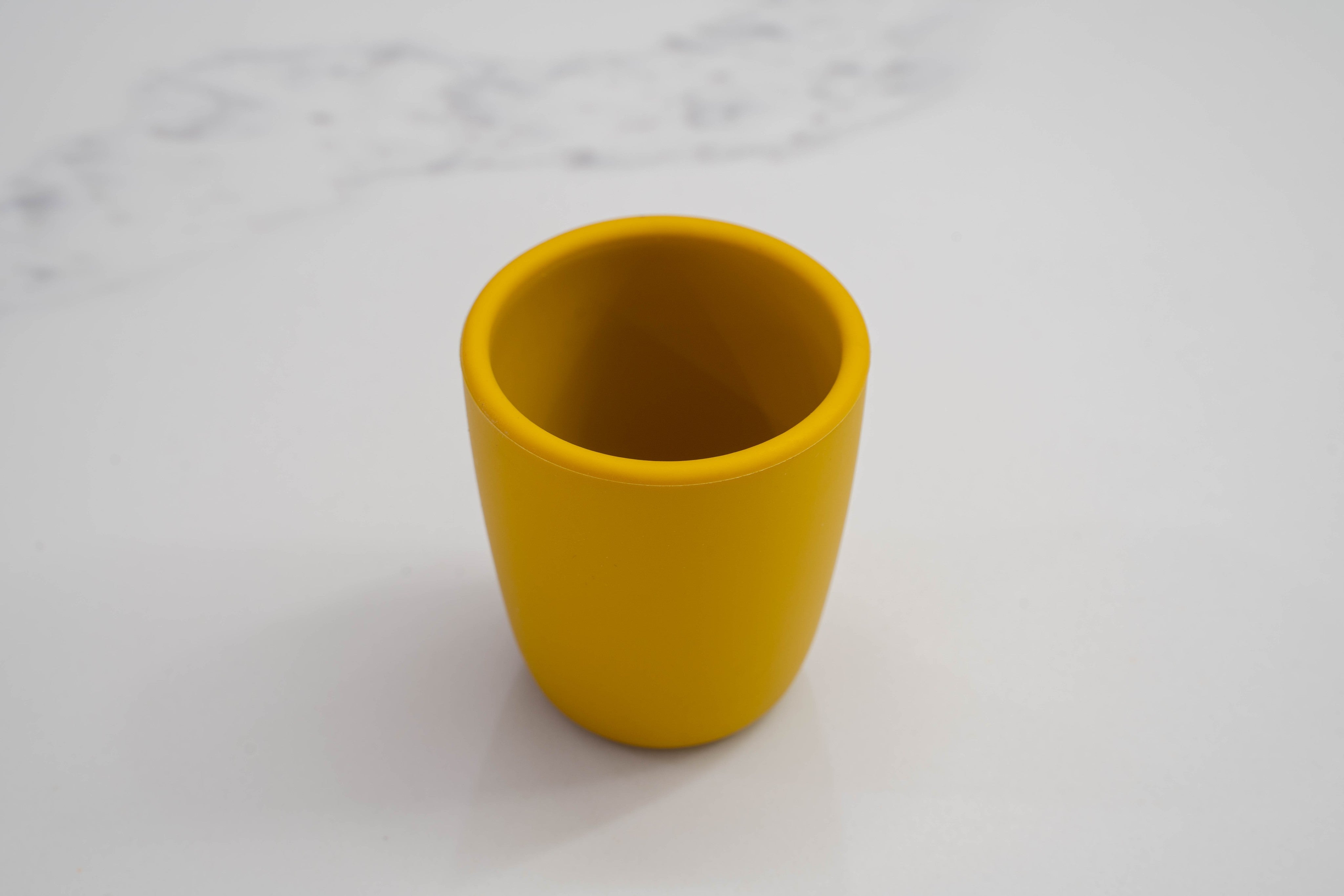 Designed to fit baby’s small mouth and hands, the soft silicone cup helps baby transition from bottle to cup. Learning to drink out of an open cup is an important developmental milestone and our silicone cup is designed to help with that process. Open cup drinking supports healthy oral & speech development, aids with teething and decreases tooth decay.
