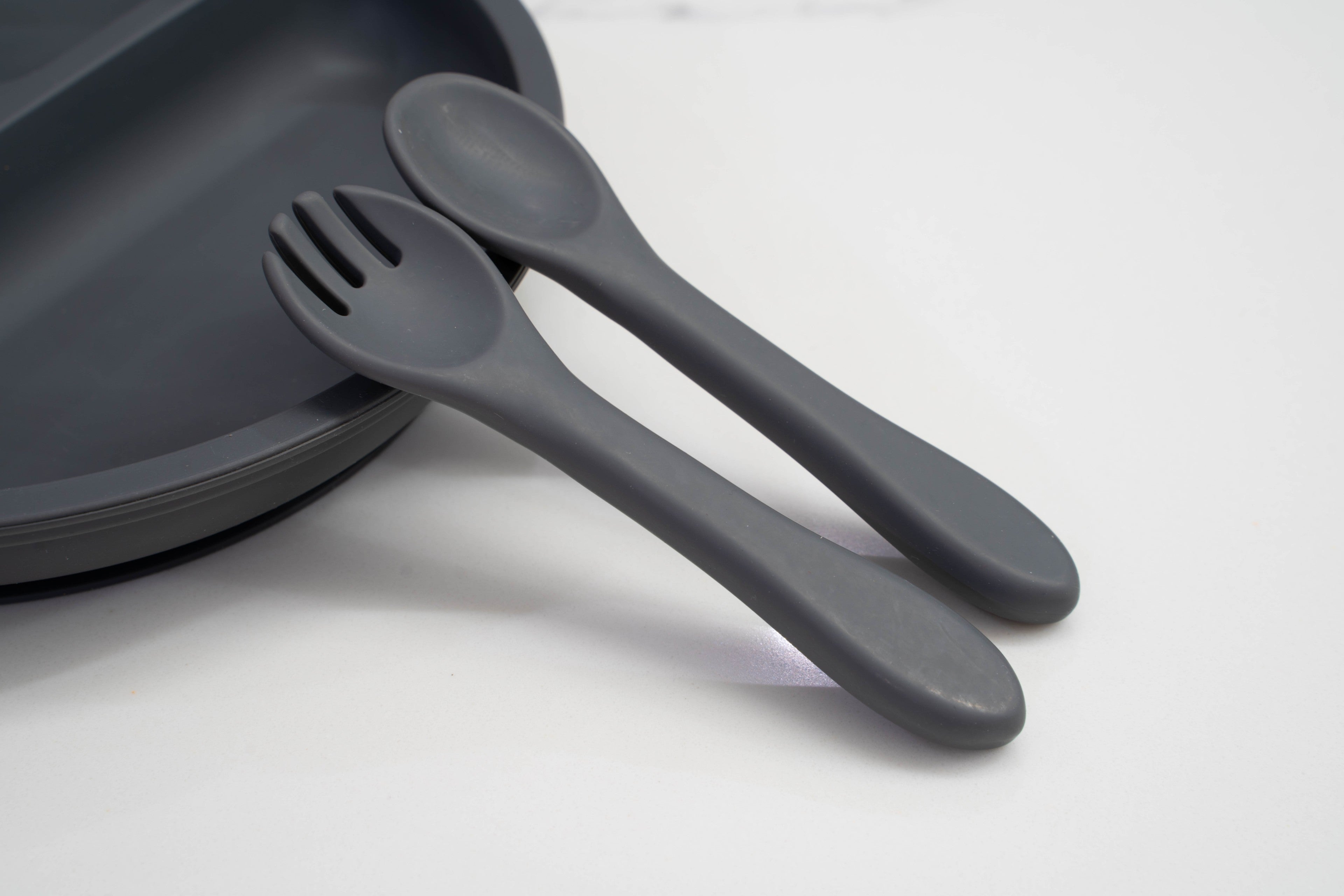 Silicone Fork & Spoon Cutlery Set - Charcoal